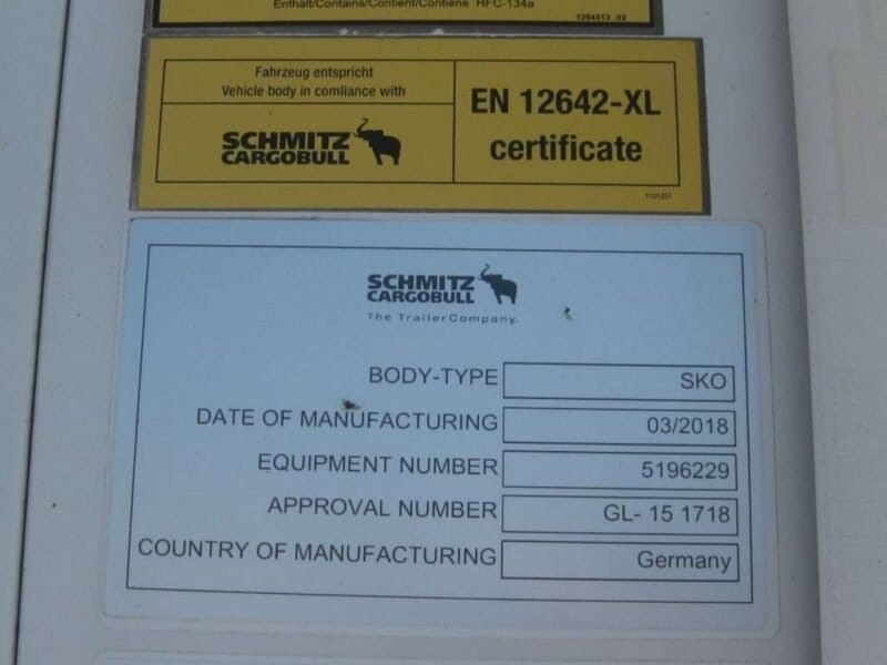 Equipment: Aggregate Thermo King SLXi 300, ATP validity until 3/2024, diesel/electric, total engine hours 2785 mth, total hours 2832 h, ATP certificate, Zertifikat zur Ladungssicherung, 2 x reserve holder, Schmitz axles, without lifting axle, pallet box , side wall thickness 7 cm, rear door lock