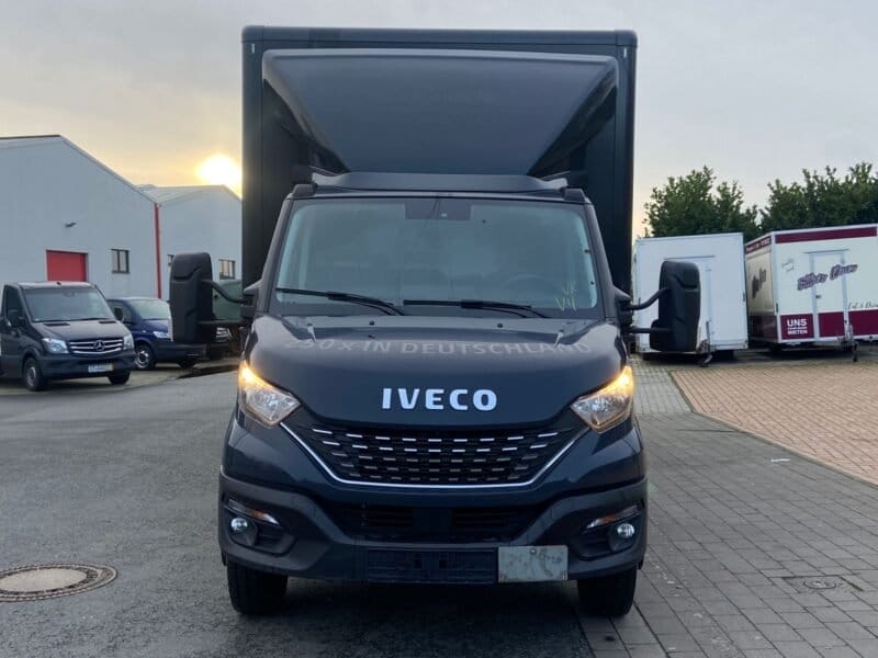 Ablage im Dachhimmel Fahrerhaus, Ablagefach auf Armaturentafel mit USB-Anschluss, Achslast Vorderachse 2,7 t, Audiosystem: Digitales Audiosystem (DAB) HI-Connect mit 7″ Farbdisplay und Navigation, Aufbauhersteller-Interface, Feststellbremse elektrisch, Klimaautomatik, Lenksäule (Lenkrad) höhen-/längsverstellbar, Licht- und Regensensor, Schalter für Beleuchtung im Laderaum, Schlussquerträger am Rahmenende, Schmutzfänger vorn, Sitze im Fahrerhaus: Fahrersitz Luxus, Traktion Plus (Elektron. Traktionskontrolle) mit Bergabfahrhilfe, Zusatzheizung (Warmwasser) mit Zeitsteuerung