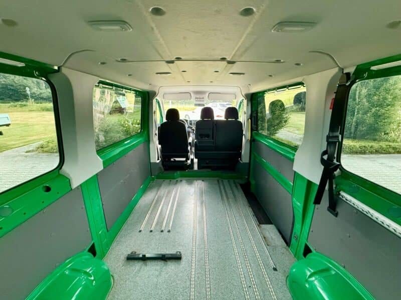 Der Innenraum ist mit einer manuellen Klimaanlage, elektrischen Fensterhebern und beheizbaren Außenspiegeln ausgestattet. Für Ihre Sicherheit sorgen Front- und Seitenairbags, ABS, ESP, Berganfahrhilfe und ein Distanzwarnsystem. Parksensoren vorne und hinten erleichtern das Rangieren. Die rechte Schiebetür bietet praktischen Zugang zum Laderaum.