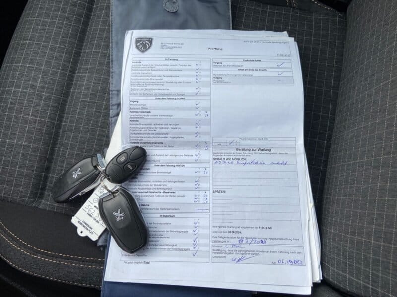 Ablagefach über den Sonnenblenden, Airbag Beifahrerseite abschaltbar, Airbag Fahrer-/Beifahrerseite, Audiosystem RCC DAB (Radio/CD-Player MP3-fähig), Autom. Begleitfunktion der Beleuchtung (Coming Home, Leaving Home), Bordcomputer, Dachreling, Einparkhilfe hinten, Elektr. Bremskraftverteilung, Fahrassistenz-System: Berganfahrhilfe, Fensterheber elektrisch hinten, Gepäckraumabdeckung / Rollo, Heckklappe, Scheibe fest, Innenspiegel mit Abblendautomatik, Karosserie: 5-türig, Kindersicherung elektrisch, Kopf-Airbag-System, Kopf-Airbag-System hinten, Lenksäule (Lenkrad) verstellbar, Motor 1,5 Ltr. – 96 kW Blue-HDI FAP, Parkbremse elektrisch, Radstand 2975 mm, Reifen-Reparaturkit, Reifendruck-Kontrollsystem, Schadstoffarm nach Abgasnorm Euro 6d, Schaltpunktanzeige, SCR-System (AdBlue-Technologie), Seitenairbag hinten, Seitenairbag vorn, Sicherheits-Paket Plus, Sicht-Paket, Sitz vorn links höhenverstellbar, Sitz vorn rechts umklappbar, Sitzbezug / Polsterung: Stoff, Sonnenblenden mit Make-up-Spiegel, Start/Stop-Anlage, Türentriegelung automatisch (bei Unfall), Türgriffe außen Wagenfarbe